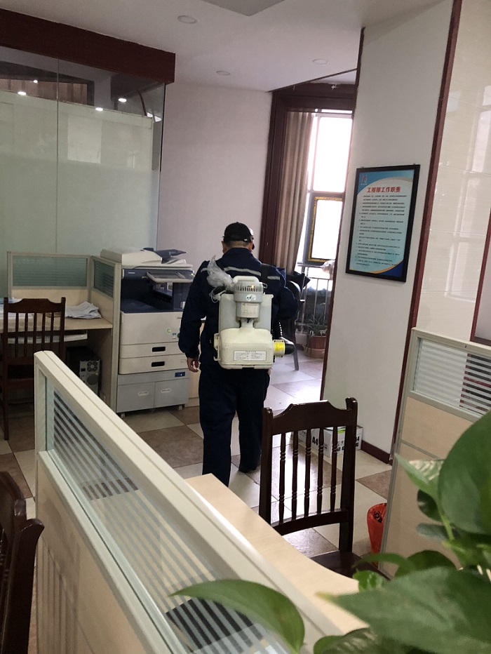 二是對(duì)單位辦公場(chǎng)所等區(qū)域開展防疫消毒工作。
