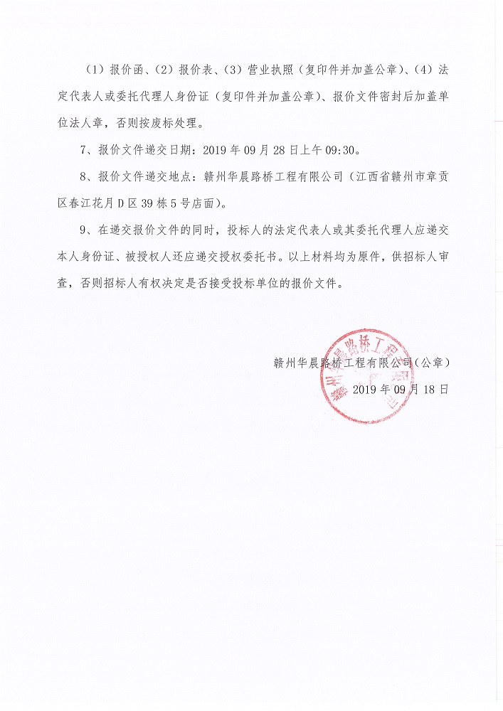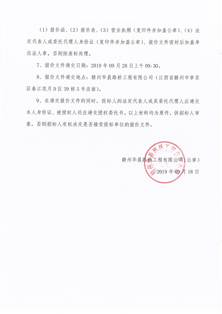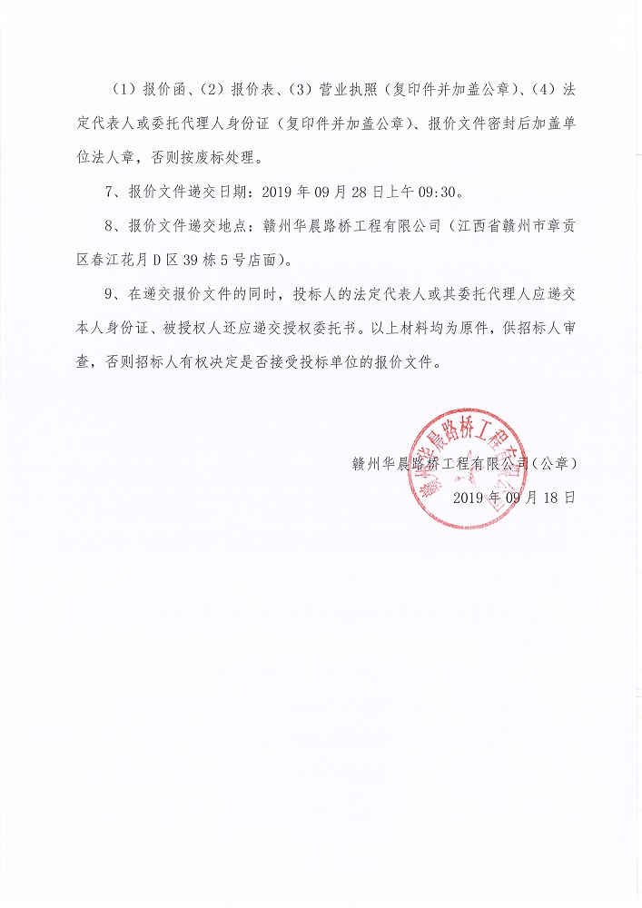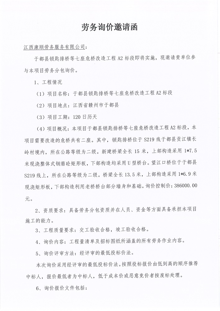 于都縣鎖匙排橋等七座危橋改造工程A2標(biāo)段勞務(wù)詢價(jià)邀請函