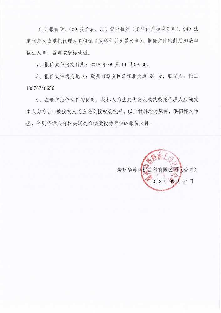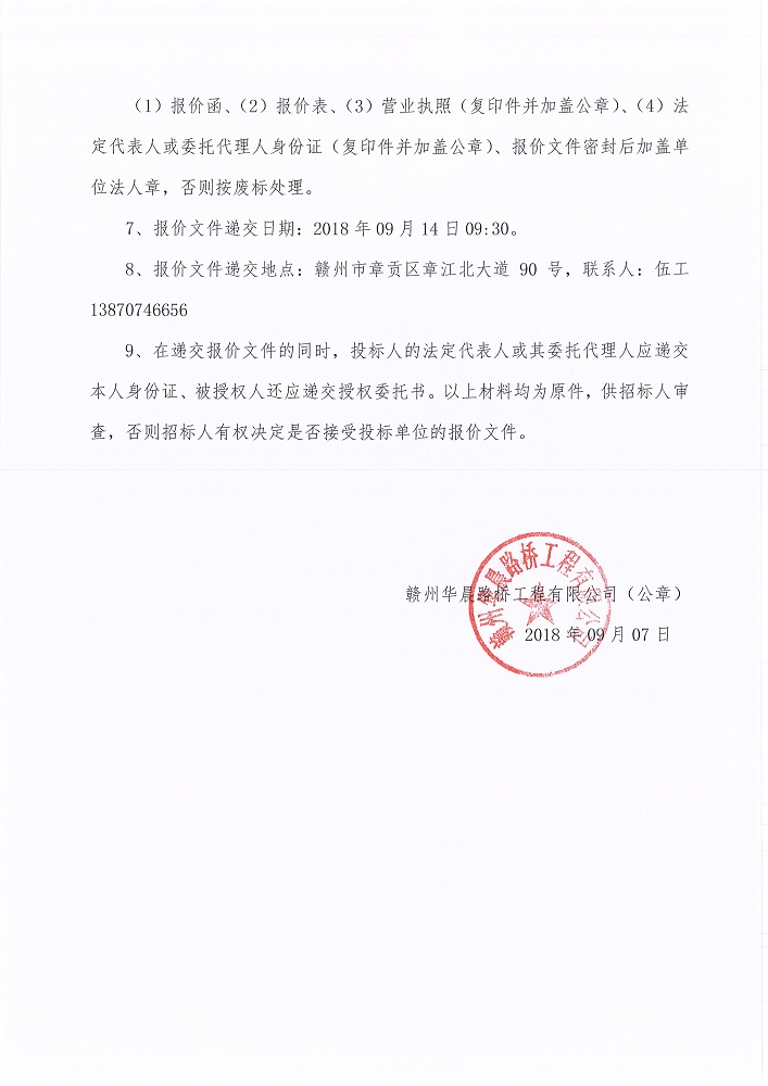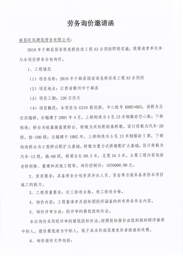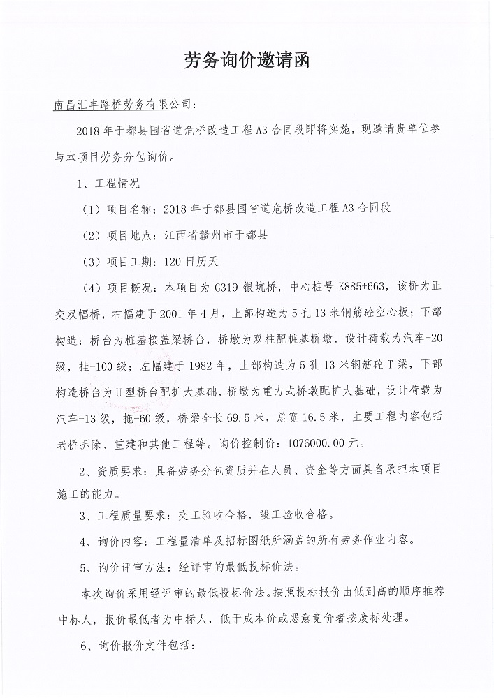 2018年于都縣國省道危橋改造工程A3合同段勞務(wù)詢價(jià)邀請函