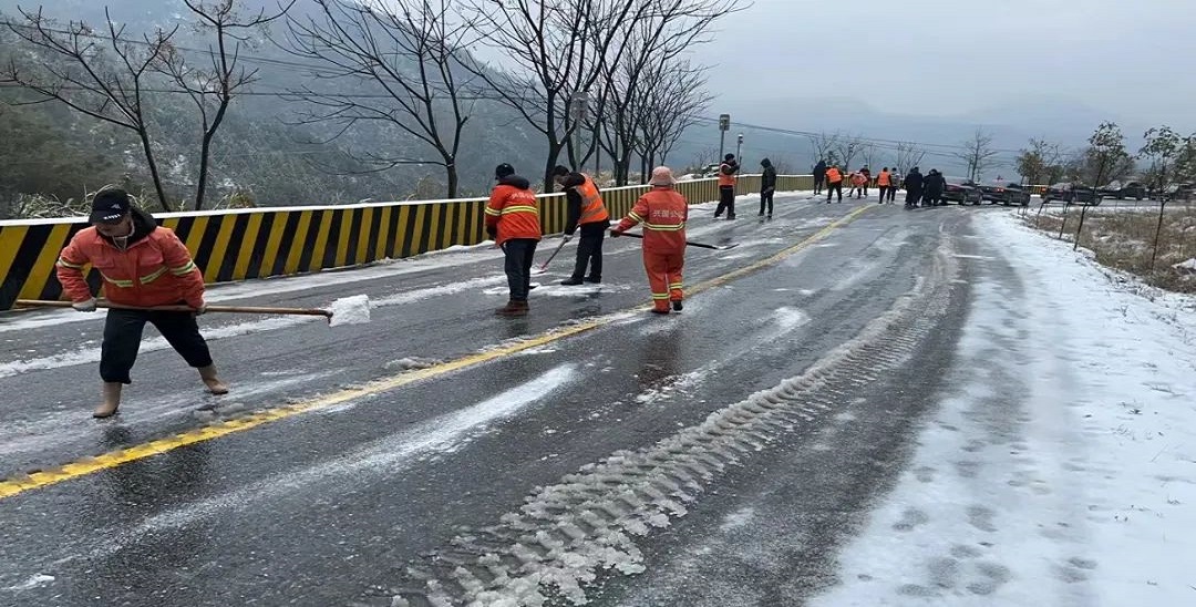 贛州公路管理部門實(shí)行領(lǐng)導(dǎo)帶班、各道班人員24小時(shí)不間斷巡路制度,并組織干部職工進(jìn)行公路鏟雪、撒鹽、碎冰、清理道路兩旁傾倒樹木等除冰除雪作業(yè),全力以赴確保轄區(qū)內(nèi)干線公路安全暢通。