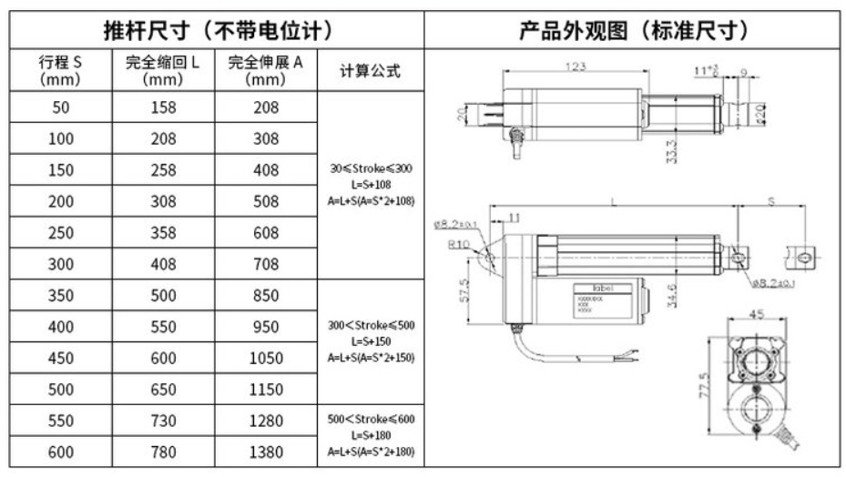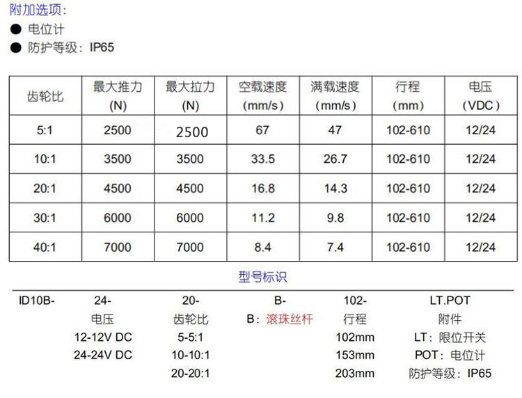 內(nèi)置限位開(kāi)關(guān)(可達(dá)300W次),可實(shí)現(xiàn)行程可隨意停止,并具備自鎖能力
