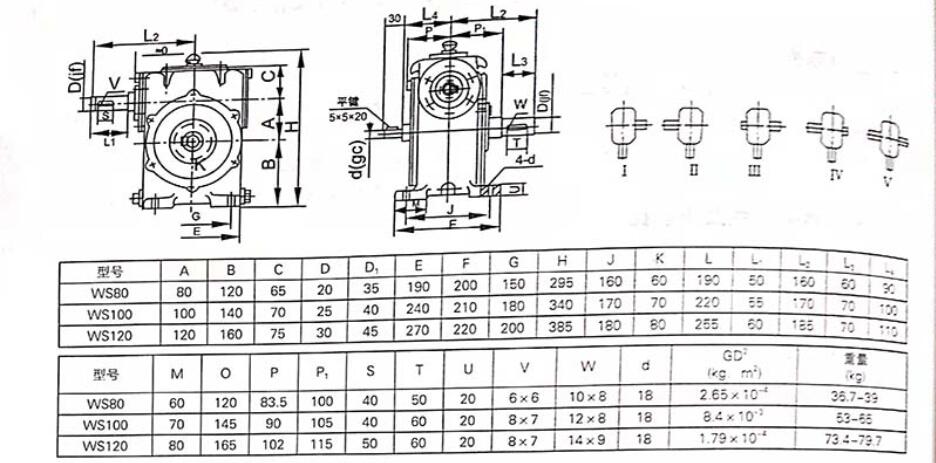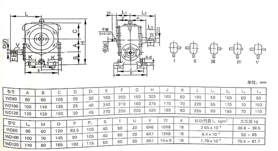 WD蝸輪減速機(jī)裝配圖和參數(shù)規(guī)格: